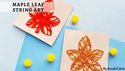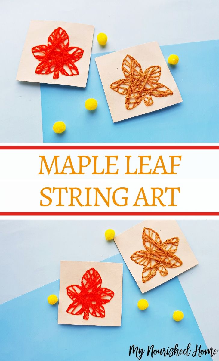 It is simple to make and a gorgeous way to brighten your home for the fall season. I love that kids can make a beautiful maple leaf using any color string they desire. This activity is not only fun to do but it will also help your kids improve their fine motor skills.